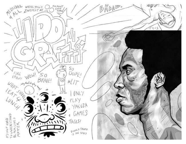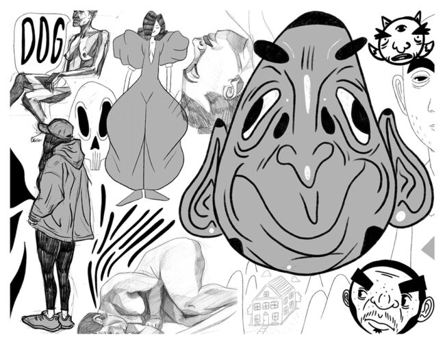 A zine collaging sketches and doodles from 2018 and 2017.