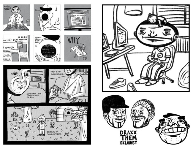 A collection of comics and doodles, some of which I worked on when I should have been sleeping.
