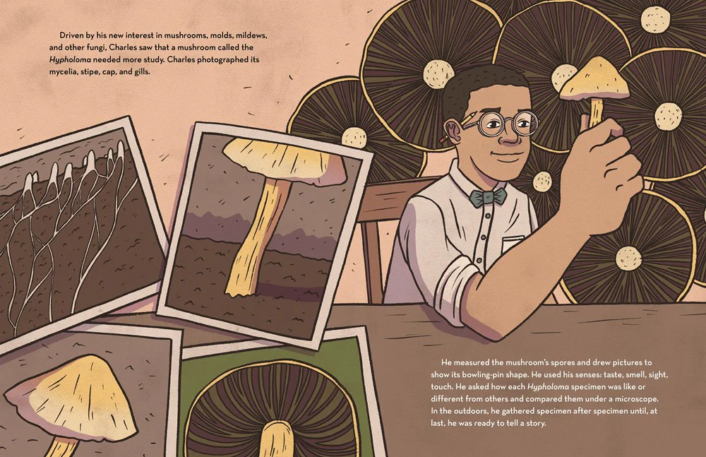 As a botanist and teacher, Charles traveled the United States, searching for new species of plants and fungi. After discovering the source of the disease killing peach and apricot trees, Charles was offered a job at Howard University, the famed historically Black college where he taught the next generation of Black scientists—men and women—to love plants and fungi as much as he did.”