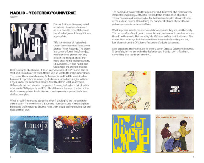 In 2007 I started a blog focusing on album cover artwork. It’s no longer online so I compiled it into a zine.